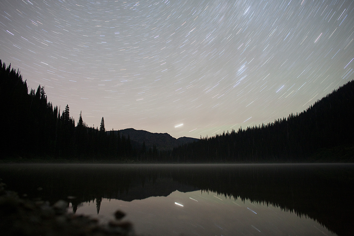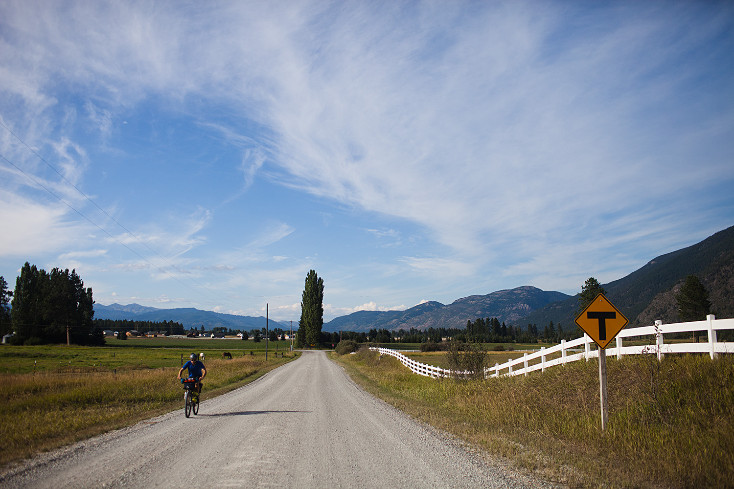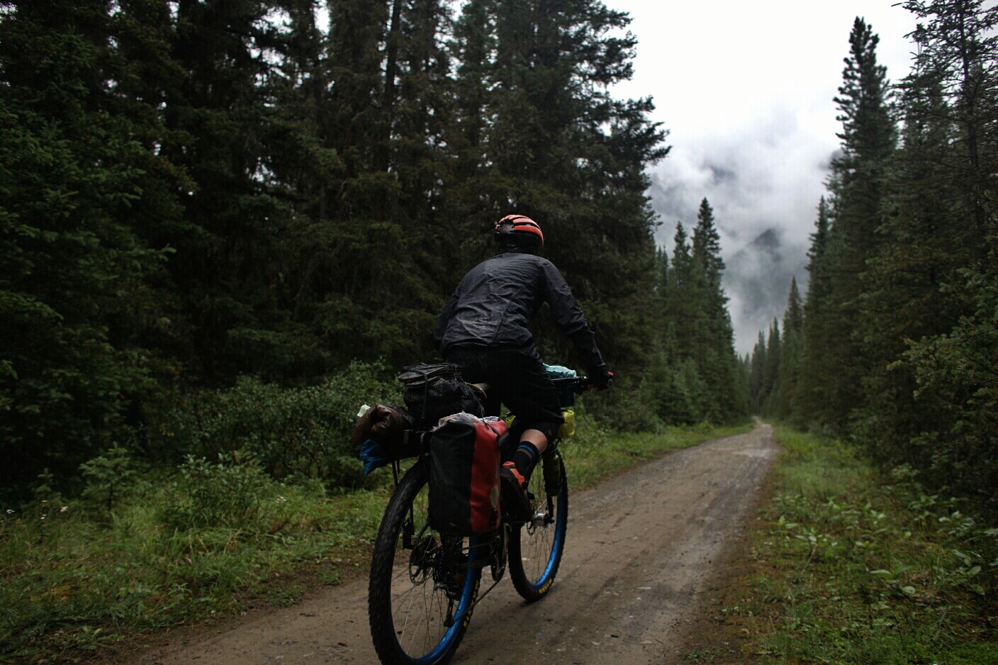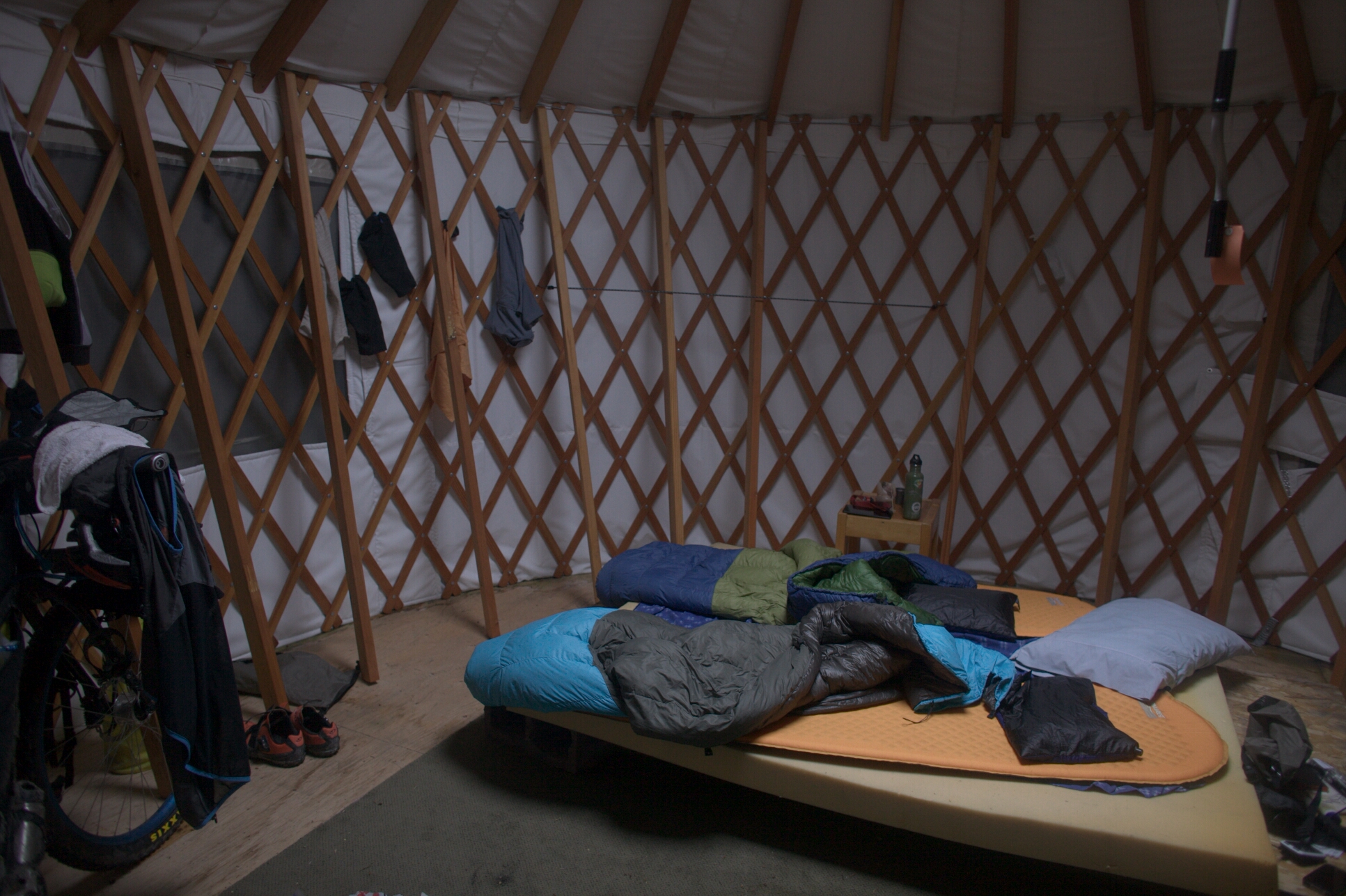 Per usual, we had a slow start in Pinedale. We packed our things and found a good breakfast down the way. After satiating our appetites, we set off for the days tasks. We had ordered replacement front racks a few days before as Matt’s broke and had been held together by a string for the previous week and they were due to arrive today. Like most times you are waiting desperately for a package, Fedex arrived much later than expected, but that was fine as we had errands to run. We dropped off postcards at the post office, attempted to pickup some general delivery packages, got a new water filter, stocked up on food and supplies for the next couple days and used the public library to back up our photos to hard drives. Once our racks arrived, we set about installing them with haste. When all was said and done it was half past four. Definitely not ideal. We shrugged it off and set out, leaving the small town of Pinedale behind. The ride was nice and windy, with intermittent rain. We trudged on into the night. Eventually we got tired and after a bit of searching, we found a decent spot to camp off the road next to a stream. The rain picked up as we set camp. We got dry and sheltered under the tarp and cooked a nice meal of rice, zucchini and sausage. We ate the delicious meal under the makeshift awning as the rain let up and the clouds scattered, exposing the full moon’s light on the eerie landscape. A couple pulls of whiskey and we were off to sleep.